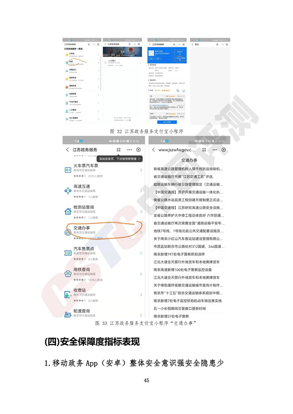 日前,《2021年省級移動政務(wù)服務(wù)能力調(diào)查評估報告》正式發(fā)布,本次調(diào)查評估對象是全國32個省份面向社會公眾提供移動政務(wù)服務(wù)的各類移動應(yīng)用,包括獨立開發(fā)的省級移動政務(wù)服務(wù)App(ios版本)27個、省級移動政務(wù)服務(wù)App(安卓版本)32個,以及基于支付寶平臺的小程序24個、基于微信平臺的小程序25個,共計108款移動政務(wù)服務(wù)應(yīng)用。