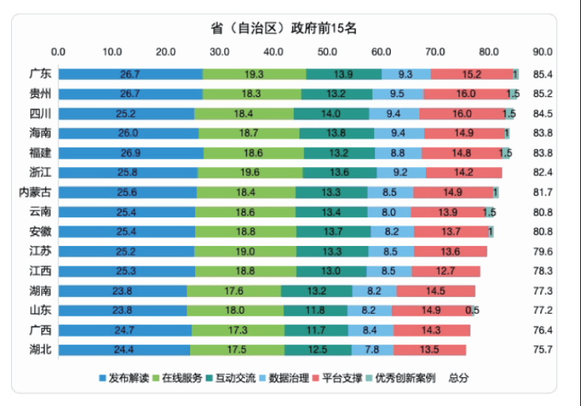 評估結(jié)果顯示,商務(wù)部、國家稅務(wù)總局、市場監(jiān)督管理總局等15家部委網(wǎng)站,廣東、貴州、四川等15家省(自治區(qū))政府網(wǎng)站,北京、上海、重慶等3家直轄市政府網(wǎng)站,深圳、青島、廈門等3家計劃單列市政府網(wǎng)站,廣州、濟南、西安等10家省會城市政府網(wǎng)站,佛山、無錫、郴州等30個地市政府網(wǎng)站和30個區(qū)縣政府網(wǎng)站表現(xiàn)突出,進入領(lǐng)先政府網(wǎng)站序列。