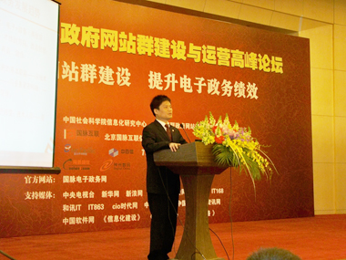 國脈電子政務(wù)網(wǎng)訊 11月27日上午,第三屆(2008)政府網(wǎng)站群建設(shè)與運(yùn)營高峰論壇在北京梅地亞中心隆重舉行。本次會議由中國社會科學(xué)院信息化研究中心和國脈互聯(lián)政府網(wǎng)站評測研究中心聯(lián)合主辦,以“加快政府網(wǎng)站群建設(shè) 提升電子政務(wù)績效”為主題,旨在共同交流政府網(wǎng)站群的建設(shè)與運(yùn)營經(jīng)驗(yàn),探索如何構(gòu)建以人為本的服務(wù)型政府網(wǎng)站“金名片”。國家信息中心信息化研究部主任助理于施洋主持了會議,中央各部委、各省市地區(qū)政府信息中心領(lǐng)導(dǎo)、管理者及網(wǎng)站運(yùn)營負(fù)責(zé)人、電子政務(wù)服務(wù)供應(yīng)商、專業(yè)媒體人士等220余人參會。