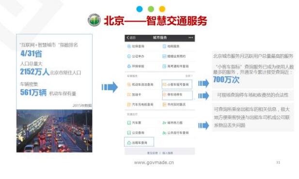 北京智慧交通服務(wù)亮點(diǎn)有:第一是關(guān)于小客車搖號(hào)查詢,大家恨不得每天一開(kāi)號(hào)就關(guān)注,這是大家的痛點(diǎn)和關(guān)注的點(diǎn)。第二是和停車相關(guān)的,車一停立馬有一個(gè)老大爺過(guò)來(lái)收費(fèi),穿一個(gè)馬甲就可以收費(fèi),但是它具不具備合法性,你是不是一個(gè)合法的停車場(chǎng),通過(guò)一個(gè)APP是可以闡釋的。