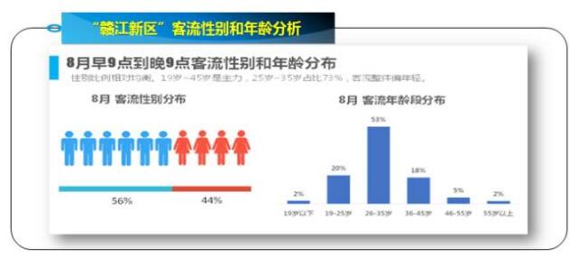 下圖中的案例是通過贛江新區(qū)人群的移動終端位置信息、時(shí)間節(jié)點(diǎn)、流動的人群來做一些跟經(jīng)濟(jì)發(fā)展熱度相關(guān)的判斷,包括行業(yè)的情況、贛江新區(qū)目前入駐的人群和企業(yè)情況,并通過這些數(shù)據(jù)來做關(guān)聯(lián)性分析。針對人員來自哪些地區(qū)進(jìn)行分析,能夠相應(yīng)出臺一些符合新區(qū)發(fā)展、支持新區(qū)發(fā)展的政策。