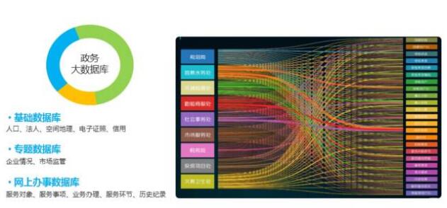 圖中左邊的內(nèi)容是政務(wù)大數(shù)據(jù)庫的建設(shè),右邊顯示辦理時(shí)長,粗線表示事件辦理的時(shí)長太長,就可以去提醒相關(guān)部門。還可以去分析如何精簡個(gè)人事項(xiàng)網(wǎng)上辦理時(shí)長,也可以在審批過程當(dāng)中通過大數(shù)據(jù)的分析簡化審批流程,這樣就可以把簡政放權(quán)和精準(zhǔn)監(jiān)管結(jié)合起來,形成了放管的目標(biāo)要求。