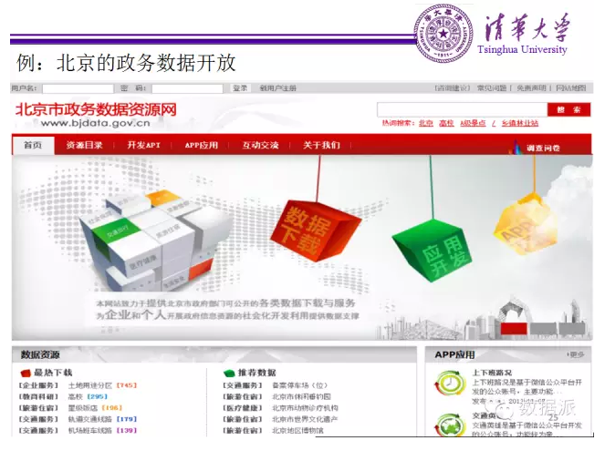 簡單看一下北京市政務(wù)數(shù)據(jù)開放的案例,政府不僅把數(shù)據(jù)開放出來,也允許各個企業(yè)在這些數(shù)據(jù)上做一些APP的應(yīng)用,并且有類似于蘋果APP STORE的機(jī)制來審核和發(fā)布這些應(yīng)用。