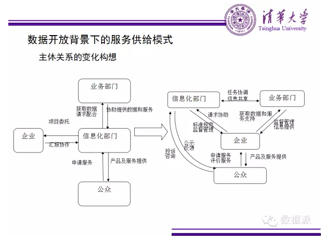 在數(shù)據(jù)開放背景下服務(wù)的供給可能會有模式的變化,數(shù)據(jù)開放后政府部門不一定要做服務(wù)的主導(dǎo),而是發(fā)揮數(shù)據(jù)監(jiān)管和提供的作用。這是新型的公私伙伴關(guān)系的模式,讓有大數(shù)據(jù)分析能力的企業(yè)來做這樣的應(yīng)用,發(fā)揮自己的作用。