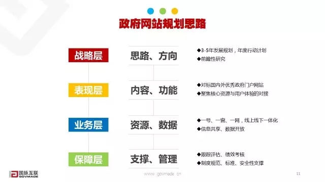 "互聯(lián)網(wǎng)+政務"背景下的"政府網(wǎng)站+"建設實際上要系統(tǒng)的看待,轉(zhuǎn)變我們以往散點式思維,形成以點帶面、以線帶面的模式,要從保障層、業(yè)務層、表現(xiàn)層、戰(zhàn)略層等多維度入手。