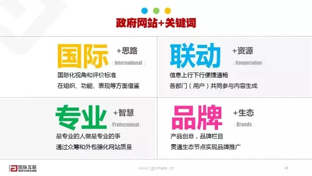 第一個是國際,要習慣用國際化的視角和標準來評價和推動網(wǎng)站建設。在組織形式、功能應用、頁面設計等方面去借鑒一些好的經(jīng)驗。