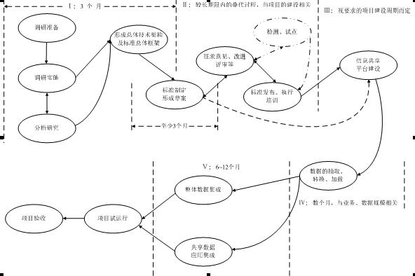?、螅涸谇懊鎯蓚€(gè)階段的工作成果基礎(chǔ)上,根據(jù)標(biāo)準(zhǔn)規(guī)范中規(guī)定的總體框架和技術(shù)架構(gòu),建立統(tǒng)一的信息共享平臺(tái),從技術(shù)層面上為整合各個(gè)部門的數(shù)據(jù)資源提供保證。信息共享平臺(tái)的建設(shè)可以在標(biāo)準(zhǔn)建設(shè)進(jìn)行到一定階段(例如草案基本完成)的時(shí)候即可啟動(dòng),而不一定要等到標(biāo)準(zhǔn)經(jīng)過評(píng)審甚至驗(yàn)證后再進(jìn)行—可以根據(jù)用戶的需要進(jìn)行安排。