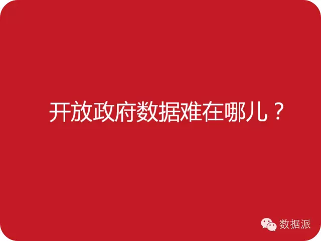 那么開放數(shù)據(jù)難在哪里?第一,數(shù)據(jù)在哪里?有些政府部門對自己有什么樣的數(shù)據(jù)資源并不完全了解,所以先要把清單整理出來。有時候你問他要數(shù)據(jù),他說我沒有,其實他是不知道他有,因為每個部門都是一條線,這個條線不知道哪條線有什么數(shù)據(jù)。