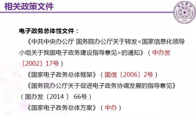 第二個重要文件是在2006年,由國家信息化辦公室的國信2號文,這個文件專門對電子政務(wù)的總體框架做了一個基本的描述,然后作為國家文件的形式固定下來。
