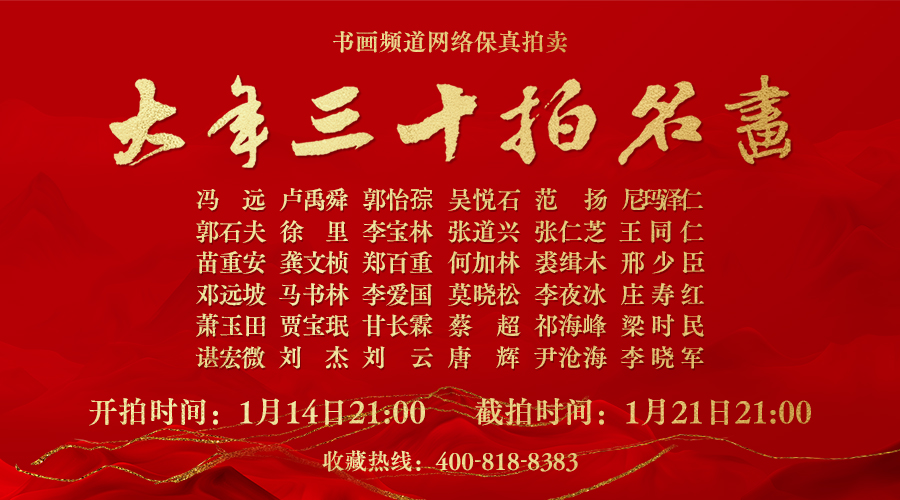 2023年,“大年三十拍名畫”文化活動(dòng)于1月14日21時(shí)重磅開拍,1月21日除夕21時(shí)順次截拍。眾多國畫大家云集一場,匯聚當(dāng)代中國畫網(wǎng)絡(luò)拍賣的超強(qiáng)陣容:中國美術(shù)家協(xié)會(huì)名譽(yù)主 席馮遠(yuǎn),中國國家畫院院長盧禹舜,中央美術(shù)學(xué)院教授、博士生導(dǎo)師郭怡孮,中國國家畫院研究員吳悅石,中國國家畫院博士后導(dǎo)師范揚(yáng),第六屆中國美術(shù)家協(xié)會(huì)副主 席尼瑪澤仁,北京畫院藝術(shù)委員會(huì)委員郭石夫,中國美術(shù)家協(xié)會(huì)副主 席徐里,中國美術(shù)家協(xié)會(huì)河山畫會(huì)名譽(yù)會(huì)長李寶林,中國畫學(xué)會(huì)副會(huì)長張道興,北京畫院畫家張仁芝,中央美術(shù)學(xué)院教授王同仁,中國國家畫院院務(wù)委員苗重安,中國國家畫院一級畫家龔文楨,福建省畫院名譽(yù)院長鄭百重,中國美術(shù)家協(xié)會(huì)理事何加林,中國國家畫院研究員裘緝木,中國國家畫院研究員邢少臣,中國藝術(shù)研究院研究員鄧遠(yuǎn)坡,中國美術(shù)家協(xié)會(huì)理事馬書林,第七、八屆中國美術(shù)家協(xié)會(huì)理事李愛國,北京畫院副院長莫曉松,中央書畫藝術(shù)研究院名譽(yù)院長李夜冰,清華大學(xué)美術(shù)學(xué)院教授莊壽紅,中國工筆畫學(xué)會(huì)藝術(shù)顧問兼會(huì)務(wù)委員會(huì)名譽(yù)主任蕭玉田,天津美術(shù)學(xué)院教授賈寶珉,中國畫學(xué)會(huì)創(chuàng)會(huì)理事甘長霖,江西省美術(shù)家協(xié)會(huì)名譽(yù)主 席蔡超,河北省美術(shù)家協(xié)會(huì)主 席祁海峰,四川省美術(shù)家協(xié)會(huì)主 席梁時(shí)民,第六屆貴州省美術(shù)家協(xié)會(huì)主 席諶宏微,河南省美術(shù)家協(xié)會(huì)主 席劉杰,中國美術(shù)家協(xié)會(huì)理事劉云,榮寶齋畫院院長唐輝,南開大學(xué)藝術(shù)與美學(xué)研究院副院長、博士生導(dǎo)師尹滄海,中國國家畫院書法篆刻藝術(shù)委員會(huì)執(zhí)行主任、研究員李曉軍。一線國畫大家傾力創(chuàng)作,傾情奉獻(xiàn),用拍賣的形式活躍國人的節(jié)日氛圍,豐富人民大眾文化生活??v觀國內(nèi)藝術(shù)市場,這樣的大咖云集景象實(shí)屬罕見,與其說這是一場盛大的網(wǎng)絡(luò)拍賣專場,不如說它是美、特別的一場文化饕餮盛宴。