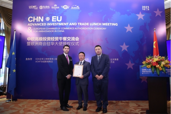 2023年5月14日,由GDA全球博士聯(lián)合會和UCMT主辦,世界經(jīng)合組織中小企業(yè)發(fā)展署、歐盟旅游投資發(fā)展委員會、歐洲商會、歐盟青年商務(wù)委員會提供支持的中歐高級投 資經(jīng)貿(mào)午餐交流會暨歐洲商會駐華大使授權(quán)儀式,在上海興國賓館獲得圓滿成功。