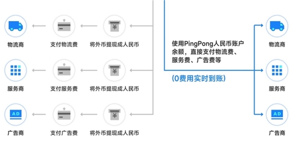 在全球服務(wù)網(wǎng)絡(luò)建設(shè)的基礎(chǔ)上,PingPong福貿(mào)還通過與花旗、摩根大通等國際系統(tǒng)性重要銀行取得戰(zhàn)略合作,構(gòu)建本地清算網(wǎng)絡(luò)體系,打造高效聯(lián)通的全球收付清分通道,并將上下游的生產(chǎn)商、貿(mào)易商、物流商、營銷商等引入了同一體系內(nèi),提供人民幣賬戶,加強境內(nèi)外資金收付通道的雙循環(huán)構(gòu)建,不僅使得外貿(mào)企業(yè)無需兌匯就可以直接完成B2B式跨境收付款,還能支持外貿(mào)企業(yè)能夠直接面向境內(nèi)供應(yīng)鏈上的供應(yīng)商完成付款,并減少了中間兌換外幣環(huán)節(jié)、減少中間行介入,因此到賬速度也提升至秒級,中間行手續(xù)費大幅降低至0元,從而有效為外貿(mào)企業(yè)在境內(nèi)外收付款環(huán)節(jié)做到降本增效,促進(jìn)了企業(yè)國際、國內(nèi)貿(mào)易的雙循環(huán)建設(shè)。