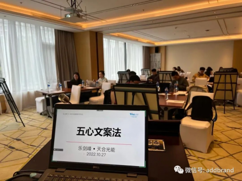 2022年10月,天合光能再次邀請樂劍峰指導品牌策略落地。樂劍峰從品牌戰(zhàn)略、營銷目標、傳播策略、創(chuàng)意概念到廣告文案的落地呈現(xiàn)。樂劍峰幫助品牌營銷團隊開拓了新的視野,以自主研發(fā)的“五心文案法”讓創(chuàng)意落地、觸動客戶,用極具滲透力的品牌價值觀表達,來提升天合光能的市場業(yè)績。