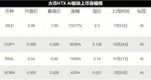 HTX 對(duì) AI 賽道保持持續(xù)關(guān)注,分別在 2023 年陸續(xù)上新了 AI 賽道相關(guān)的 WLD、CGPT、PAAL,并在最近上線了 SORA。