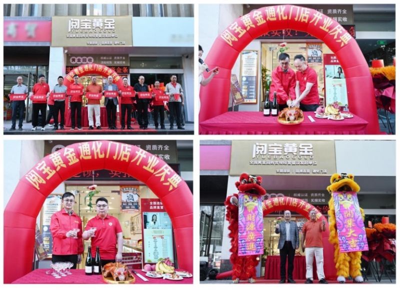 通化門店的開業(yè)儀式中,領(lǐng)導(dǎo)嘉賓登臺致辭,表達(dá)了對新店未來發(fā)展的美好祝愿。在剪彩環(huán)節(jié),周曉帆先生、連俊江先生、張俊偉先生、陳輝龍先生、紀(jì)曉明先生、黃超群先生、張小龍先生、陳敬灶先生、黃海榮先生、鐘亨城先生手持金剪,隨著彩帶的剪開,象征著閱寶黃金通化門店正式踏上黃金服務(wù)的新征程。切金豬環(huán)節(jié)由張俊偉先生和陳輝龍先生執(zhí)禮,以莊重之姿祈愿門店事業(yè)長青。緊接著,張俊偉先生和鄭柏川先生共同注酒,金色香檳層層遞進(jìn),寓意著店內(nèi)黃金業(yè)務(wù)將如香檳塔般層層遞進(jìn),蒸蒸日上。點(diǎn)睛環(huán)節(jié)由周曉帆先生和連俊江先生執(zhí)筆,雙筆齊落,為祥獅點(diǎn)染“金睛”。隨后,靈獅采青納福,接“財氣”入店,以靈動之姿繞柜灑金,為門店帶來吉祥與好運(yùn)。